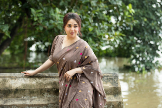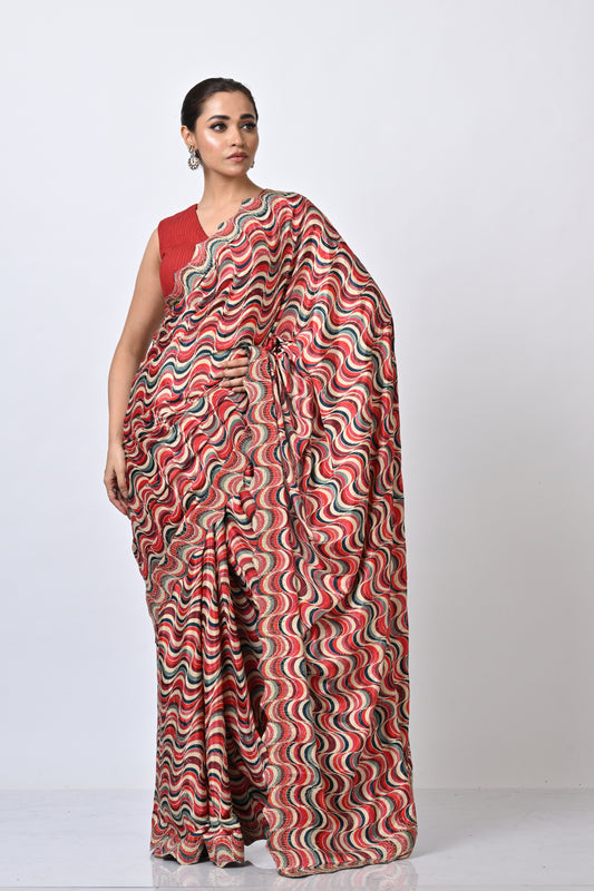 Mauve Pure Chiffon Georgette Saree With Full Embroidery