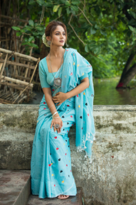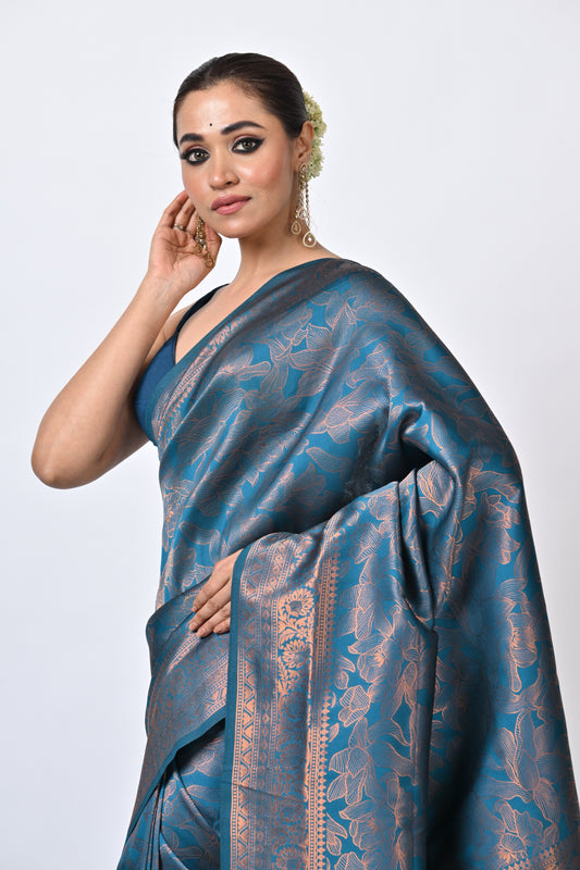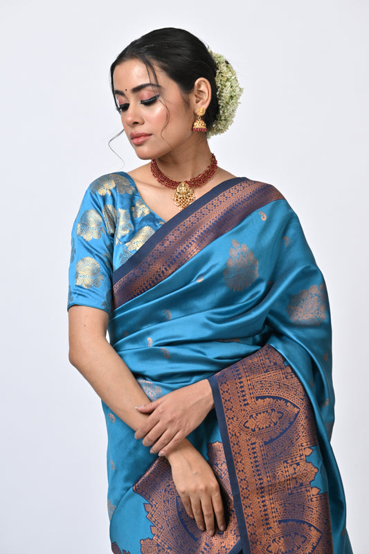 Sold outNazakat Teal Blue Bengal Silk Saree