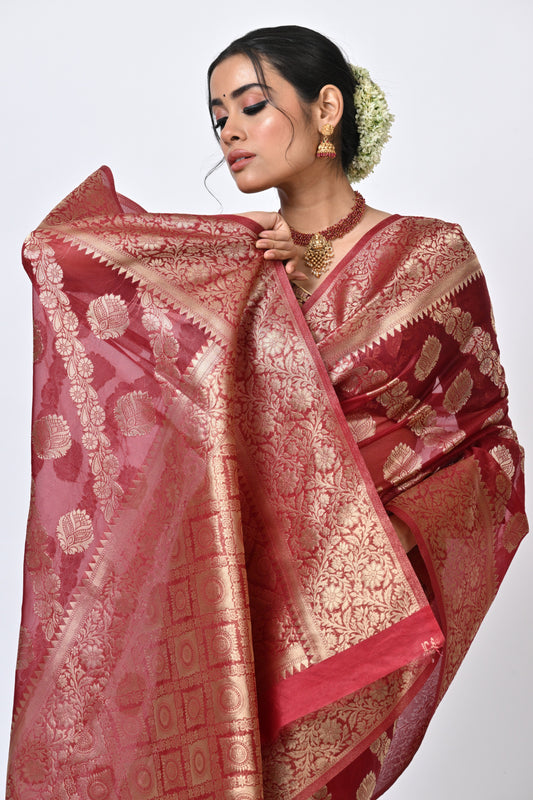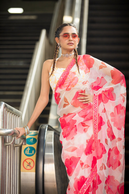Soft Pink Cotton Saree - Laal Par Gulaabi