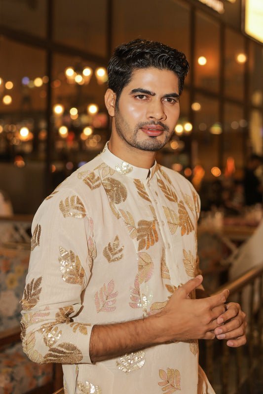 Hand Sequence Sliver and Gold Embroidery Kurta