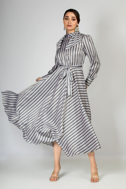 Black and White Satin A-Line Dress