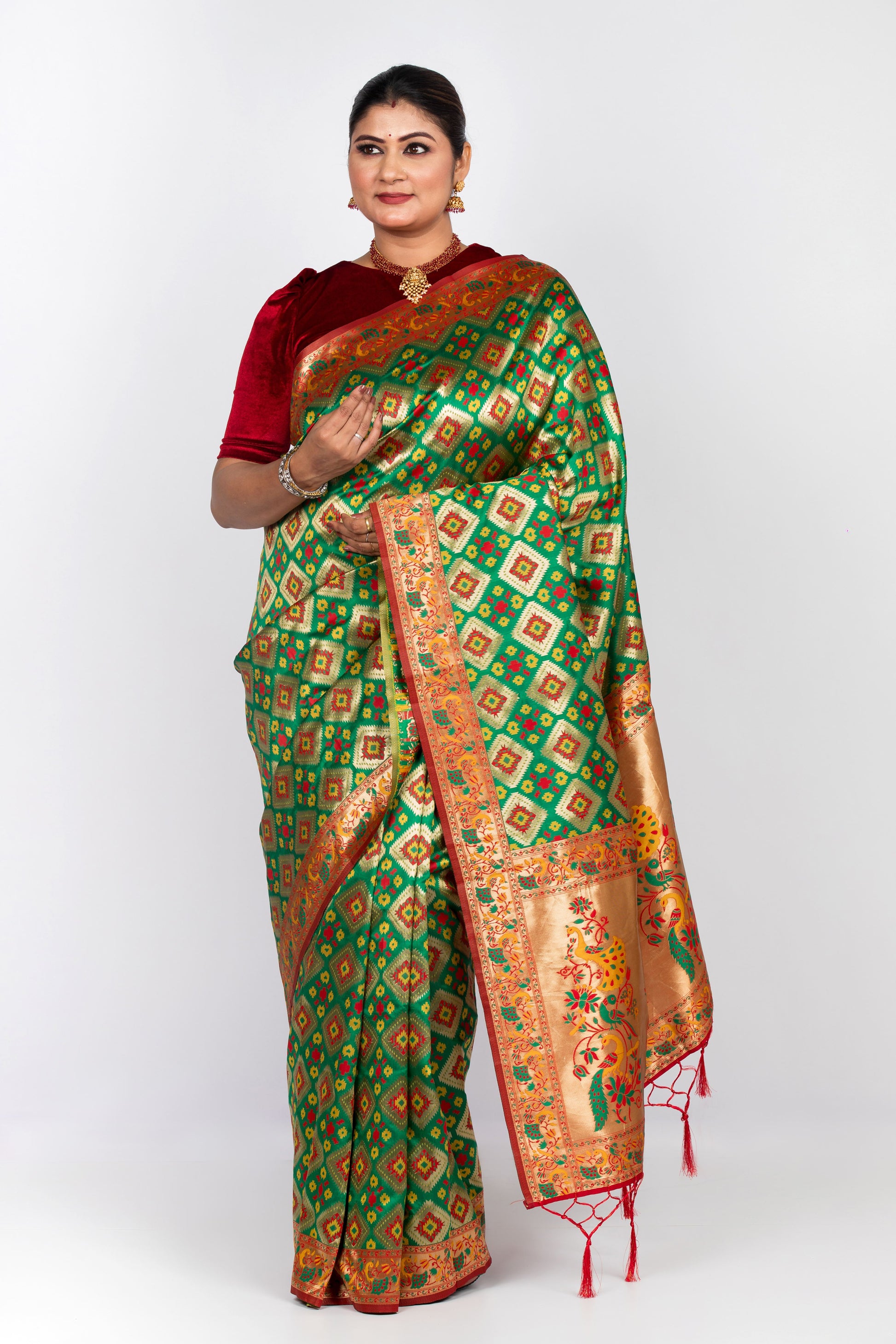 Experience the beauty and elegance of the Green Silk Zari Saree - a stunning and luxurious addition to any wardrobe.